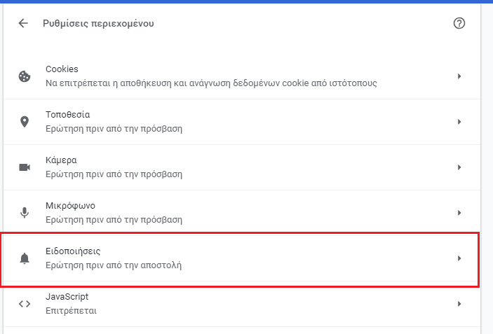 Ας δούμε λοιπόν πως να απενεργοποιήσουμε εντελώς τις ειδοποιήσεις από όλα τα site. Για να το κάνουμε αυτό, ακολουθούμε τα παρακάτω βήματα: