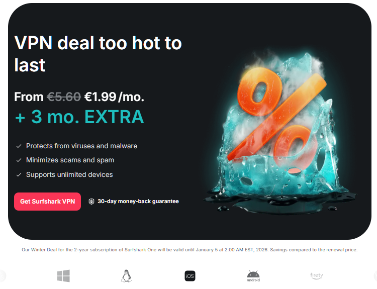 Surfshark VPN μόνο με €1,99 μηνιαίως + Έξτρα χρήση