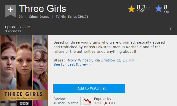 Αφορά τρία νεαρά κορίτσια που κακοποιήθηκαν σεξουαλικά και έπεσαν θύματα διακίνησης από Πακιστανούς υπηκόους του Ηνωμένου Βασιλείου. Ταυτόχρονα, πραγματεύεται και την αποτυχία των αρχών και της αστυνομίας.