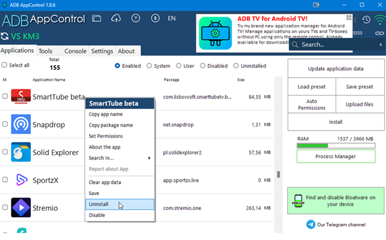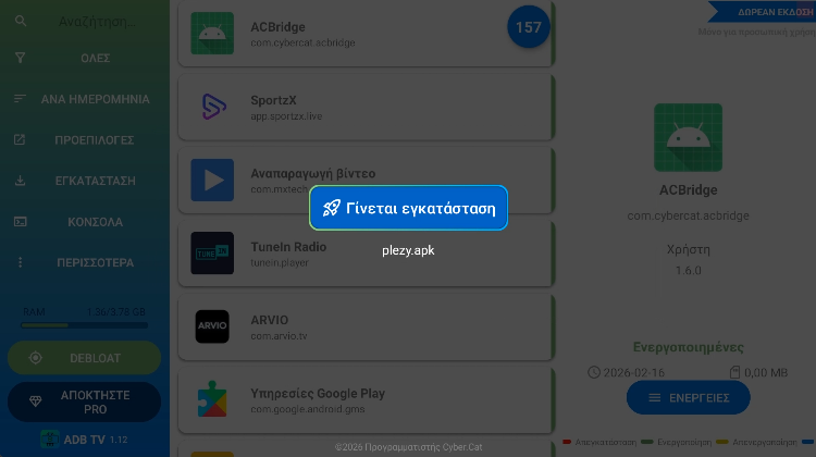 Και εδώ έρχεται άλλο ένα ακόμη χρήσιμο χαρακτηριστικό του ADB TV: η εξαιρετική διαχείριση των εγκατεστημένων εφαρμογών μας.