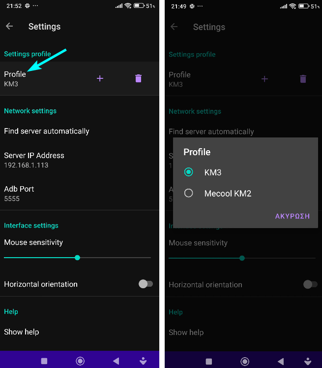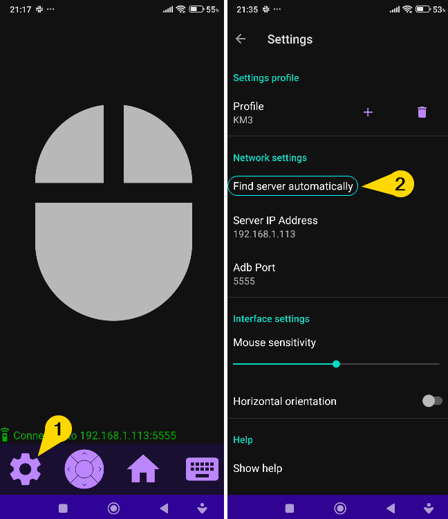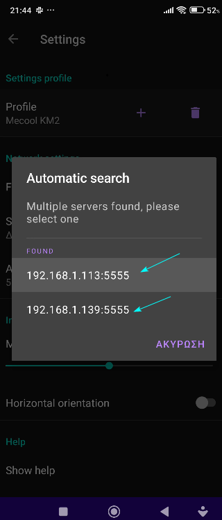 Το μόνο που πρέπει να κάνουμε μια φορά όταν ανοίξουμε το app στο κινητό (με ανοικτό και το TV Box), είναι να πατήσουμε στις ρυθμίσεις και μετά στο Find server automatically.