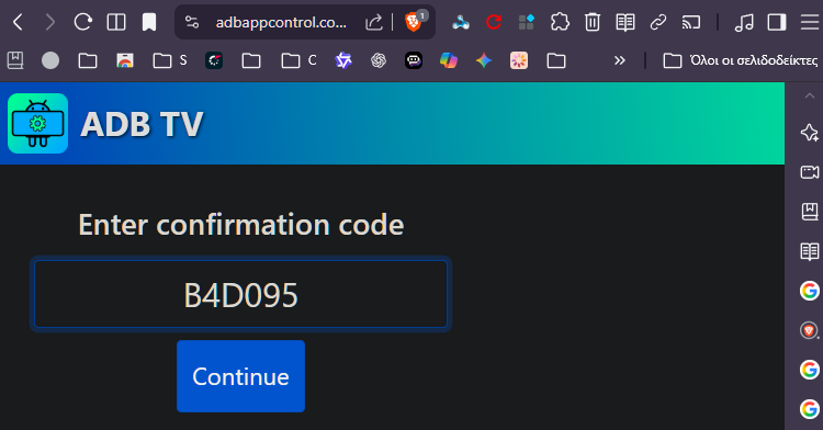 Απλά βάζουμε στα αγαπημένα μας στον browser του PC τη διεύθυνση που θα μας δώσει το ADB TV app στην Android TV (στο παράδειγμα μας είναι το adb.li/tvi)…