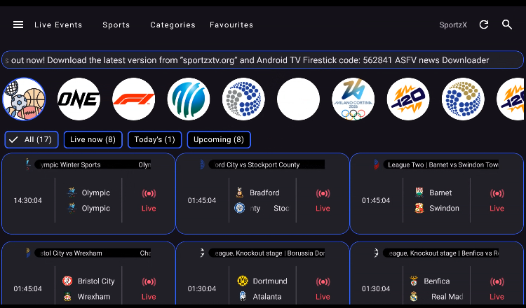 Το SportzX TV είναι ένα από τα νέα και καλύτερα Android TV apps χωρίς buffering, το οποίο παρέχει πρόσβαση σε ζωντανές αθλητικές ροές και εκατοντάδες κανάλια. Όλα, σε πολύ καλή ποιότητα εικόνας και ήχου.