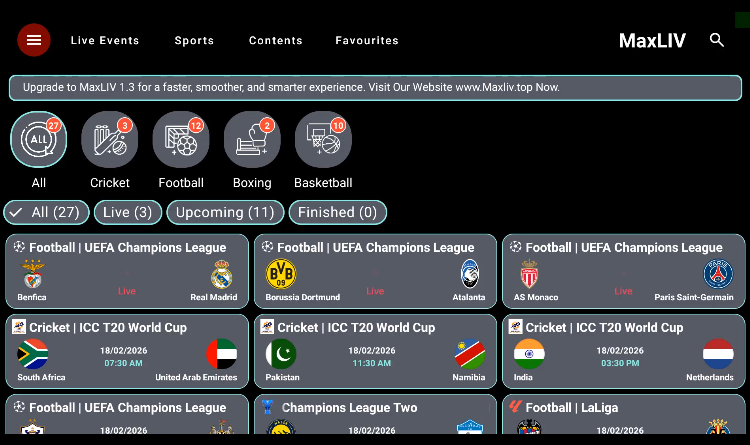 Το MaxLIV είναι και αυτή μια νεότερη Android εφαρμογή για live sports χωρίς καθόλου διαφημίσεις, η οποία ενημερώθηκε στην έκδοση 1.3 πολύ πρόσφατα. Η δωρεάν πλατφόρμα για ζωντανές αθλητικές μεταδόσεις έχει και αυτή ενεργή κοινότητα και σχεδιαστές.