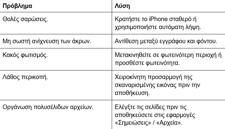 Ακόμα και με τα ενσωματωμένα εργαλεία, ενδέχεται να εμφανιστούν μικρά προβλήματα όταν σκανάρετε από iPhone. Ορισμένα από αυτά και οι λύσεις τους είναι τα εξής: