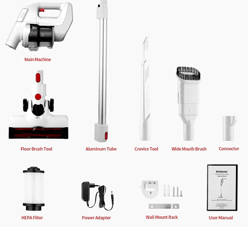Η ασύρματη σκούπα Alfawise FJ – 166A έρχεται εξοπλισμένη με μία πληθώρα από παρελκόμενα, έτσι ώστε να μπορούμε να τη χρησιμοποιήσουμε σε κάθε πιθανή γωνιά του σπιτιού.