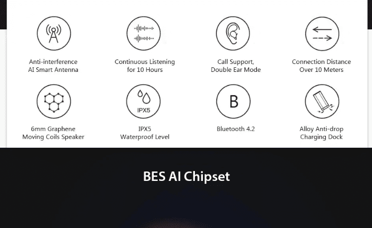 Είναι εξοπλισμένες με ένα chipset BES IZ 2000 AI, το οποίο είναι αρκετά μικρό αλλά προσφέρει εξαιρετική απόδοση στα ακουστικά. Υποστηρίζουν μουσική μετάδοση υψηλής ποιότητας και χαμηλή κατανάλωση ενέργειας, ενισχύοντας περαιτέρω την αυτονομία.