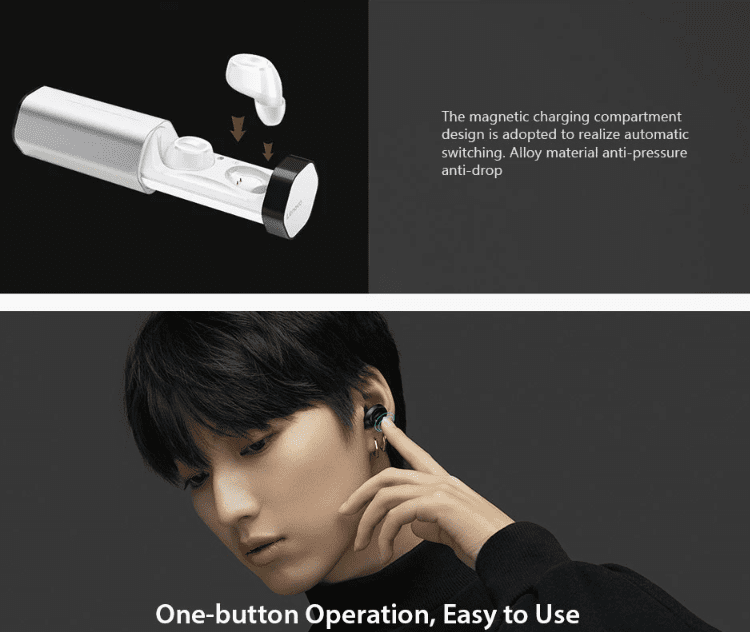 Οι bluetooth ψείρες έρχονται με μια μαγνητική βάση φόρτισης 400mAh, η οποία μπορεί να προσφέρει 10 ώρες μουσικής, και είναι συμβατές με όλες τις τηλεφωνικές μας κλήσεις.