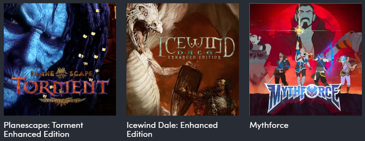 Συγκεκριμένα, πληρώνοντας από 5,23€ και πάνω, παίρνουμε το “Planescape: Torment Enhanced Edition”, το “Icewind Dale: Enhanced Edition”, και το “Mythforce”.