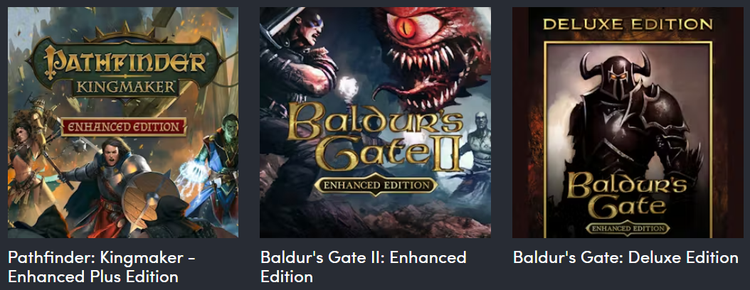 Την ίδια στιγμή, δίνοντας τουλάχιστον 7,32€ αγοράζουμε επιπλέον το “Pathfinder: Kingmaker – Enhanced Plus Edition”, το “Baldur's Gate II: Enhanced Edition”, και το “Baldur's Gate: Deluxe Edition”.