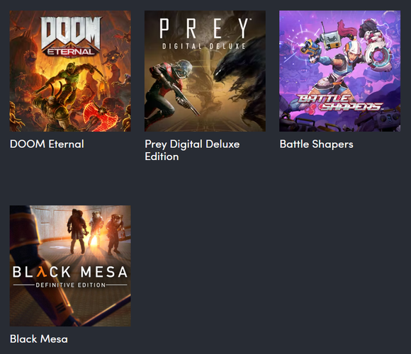 Συγκεκριμένα, πληρώνοντας από 14,91€ και πάνω, παίρνουμε το “DOOM Eternal”, το “Prey Digital Deluxe Edition”, το “Battle Shapers”, και το “Black Mesa”.