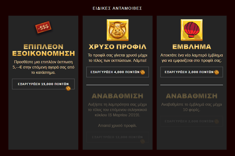 Επίσης, κάθε αγορά που πραγματοποιούμε μας αποφέρει πόντους, τους οποίους μπορούμε να εξαργυρώσουμε στον Θάλαμο Ανταμοιβών.