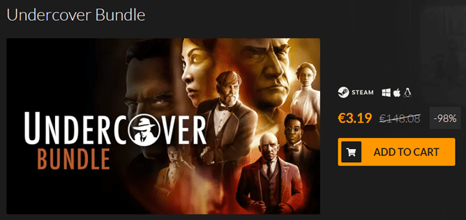 Η πραγματική αξία όλων των παιχνιδιών μαζί είναι 148,08€. Ωστόσο, εμείς με το “Fanatical Exclusive: Undercover Bundle” πληρώνουμε για αυτά 3,19€.