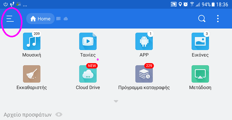 Παραθέτουμε σε εικόνες τα βήματα που πρέπει να κάνουμε στο TV Box μέσω ενός USB drive. Αρχικά, ανοίγουμε τον ES File Explorer και ενεργοποιούμε την εμφάνιση κρυφών αρχείων που είδαμε προηγουμένως.