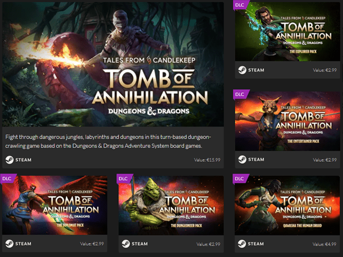 Το “Tales from Candlekeep: Tomb of Annihilation” είναι ένα turn-based dungeon-crawling παιχνίδι στρατηγικής, εκδότης του οποίου είναι η BKOM Studios. Όλο το περιεχόμενο του παιχνιδιού είναι βασισμένο στις ιστορίες του D&D.