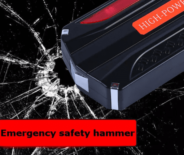 Το power bank της φωτογραφίας έχει τέσσερις θύρες USB, μία θύρα εξόδου για laptop, και 3 LED λάμπες οι οποίες χρησιμεύουν ως φακός. Επίσης, χρησιμεύει ως σφυρί ασφαλείας σε περίπτωση που χρειαστεί να σπάσουμε τα τζάμια του αυτοκινήτου.