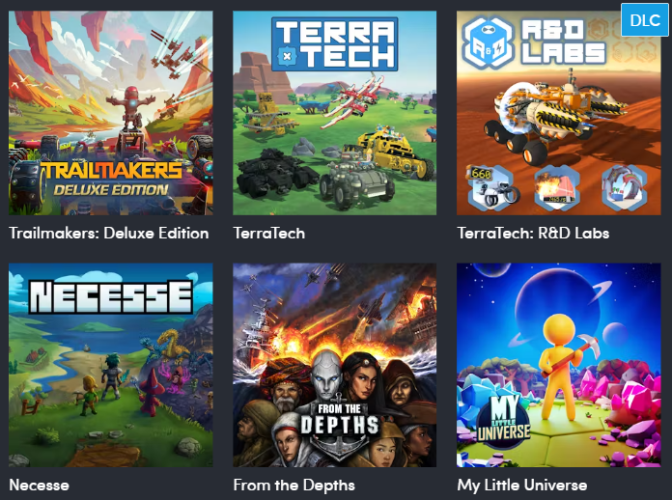 Συγκεκριμένα, πληρώνοντας από 11,07€ και πάνω, παίρνουμε το “Trailmakers: Deluxe Edition”, το “TerraTech”, το “TerraTech: R&D Labs”, το “Necesse”, το “From the Depths”, και το “My Little Universe”.
