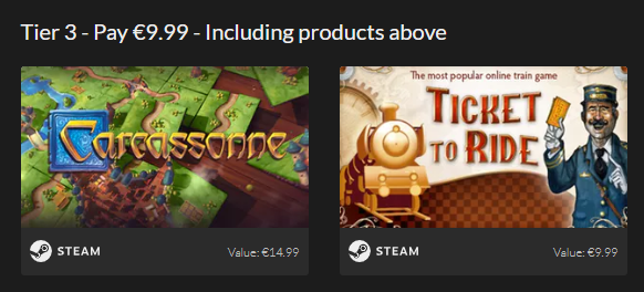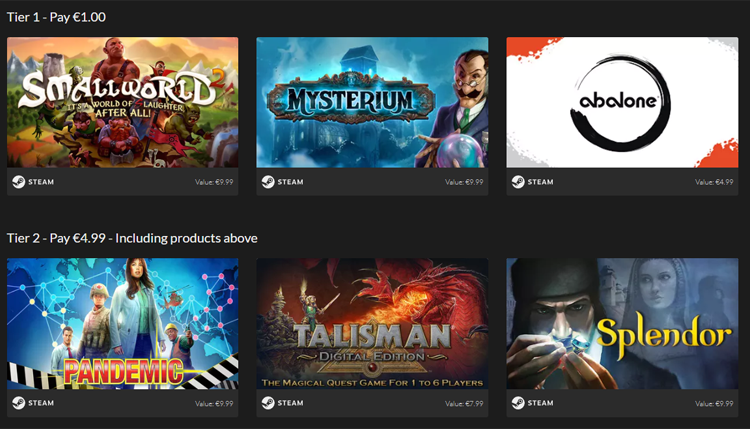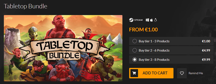 Το Tabletop Bundle είναι μία συλλογή από ενδιαφέροντα ψηφιακά επιτραπέζια παιχνίδια. Στο συγκεκριμένο bundle θα βρούμε τρεις διαφορετικές επιλογές πακέτων ή τρία διαφορετικά tier, όπως τα ονομάζει το Fanatical.