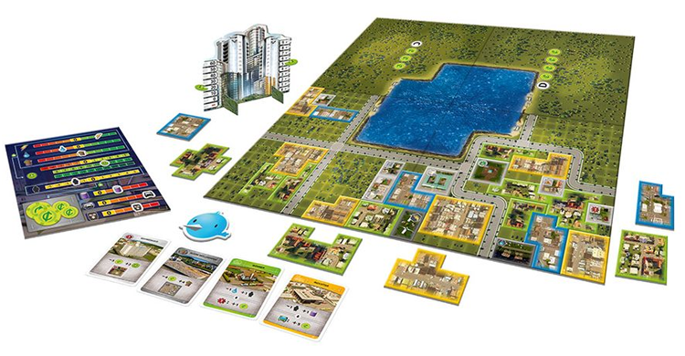 Το Cities: Skylines δεν είναι σαν τη Monopoly με μικρά σπίτια και παραλληλόγραμμες ιδιοκτησίες. Αντιθέτως, περιέχει πολυόμινα κομμάτια που το κάθε ένα αντιπροσωπεύει συγκεκριμένο τύπο περιοχής, και η τοποθέτησή τους στο ταμπλό θυμίζει Tetris.