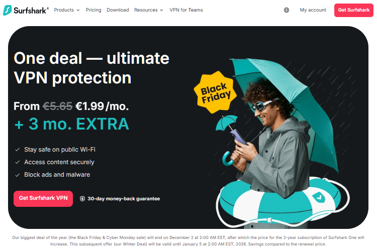 Surfshark VPN μόνο με €1,99 μηνιαίως + Έξτρα χρήση