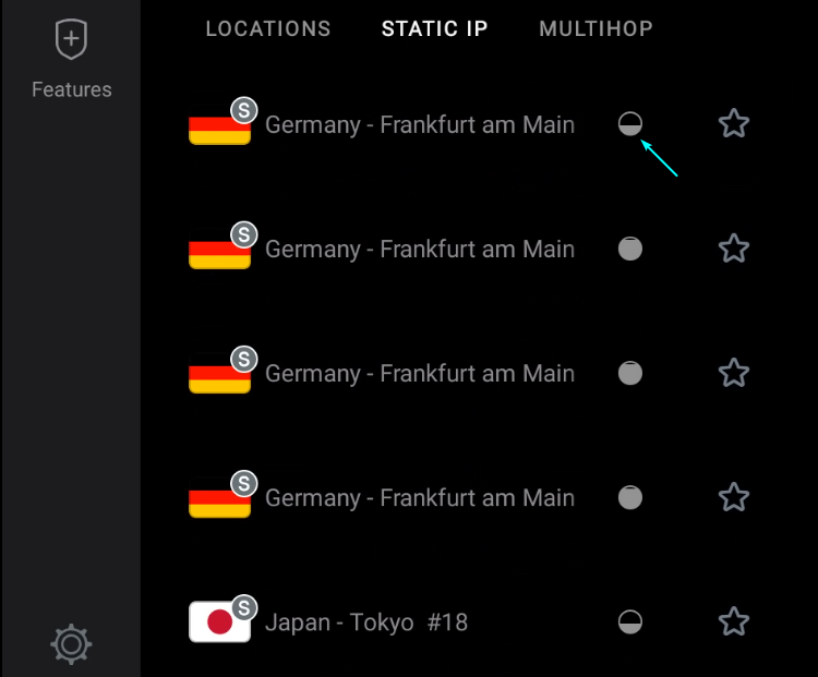 To Surfshark είναι και το μοναδικό VPN που έχει και σχετική ένδειξη για το ποιοι Static IP server δεν είναι γεμάτοι, και έχουν καλύτερη απόδοση στα streams εκείνη τη στιγμή.