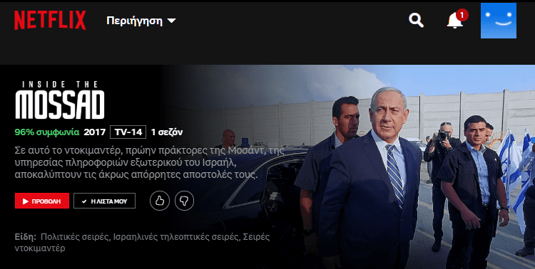 Σε αυτό το ενδιαφέρον ντοκιμαντέρ τεσσάρων επεισοδίων του Netflix, δεκάδες πρώην πράκτορες της περίφημης μυστικής υπηρεσίας του Ισραήλ μας βάζουν στα άδυτα των απόρρητων επιχειρήσεων της. Μπορούμε να δούμε το τρέιλερ εδώ.