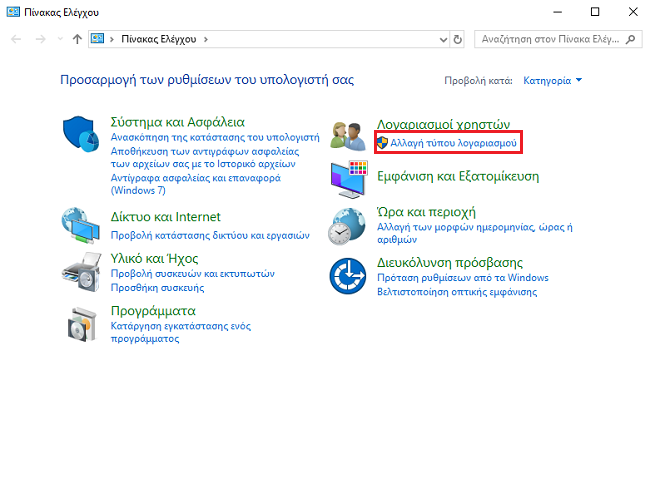 - Πατάμε «Αλλαγή τύπου λογαριασμού».