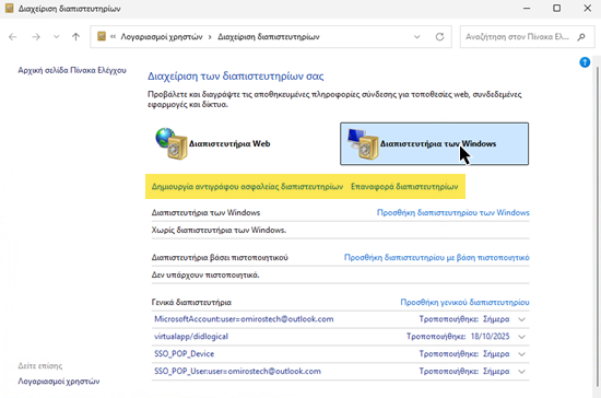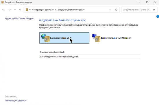 Τα Windows διαθέτουν έναν ενσωματωμένο Διαχειριστή Διαπιστευτηρίων – κωδικών πρόσβασης που μας επιτρέπει να αποθηκεύουμε, να διαχειριζόμαστε και να προστατεύουμε με ασφάλεια τα διαπιστευτήριά μας.