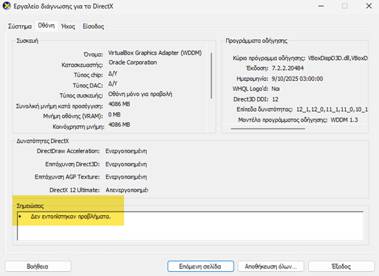 Πρόκειται για ένα πολύτιμο διαγνωστικό εργαλείο που μας βοηθά να εντοπίζουμε και να επιλύουμε προβλήματα που σχετίζονται με τη GPU ή τα παιχνίδια, να ελέγχουμε την κατάσταση και τις εκδόσεις των drivers, καθώς και να πραγματοποιούμε δοκιμές απόδοσης για την αξιολόγηση των δυνατοτήτων του DirectX.