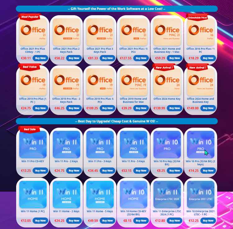 - Microsoft Office 2021 Pro– 100 Κλειδιά 2.400€ (μόνο 24€/Κλειδί)