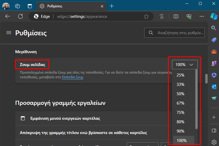Πώς επιλέγω και αλλάζω το προεπιλεγμένο ζουμ στον Microsoft Edge