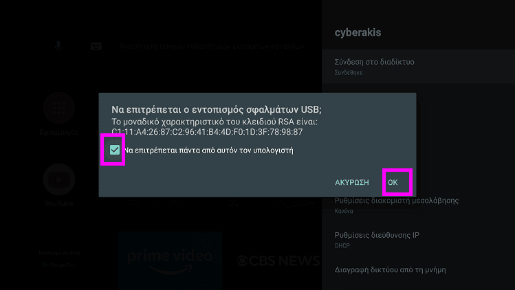 Αμέσως μετά θα δούμε μια ειδοποίηση στο TV Box. Απλά επιλέγουμε το “Να επιτρέπεται πάντα από αυτόν τον υπολογιστή”.
