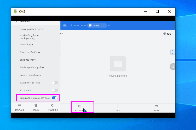 Από εκεί και μετά, αφού επιλέξουμε τον φάκελο που θέλουμε να μεταφέρουμε τα αρχεία από το PC, απλά πατάμε με το ποντίκι κάτω στην επικόλληση.