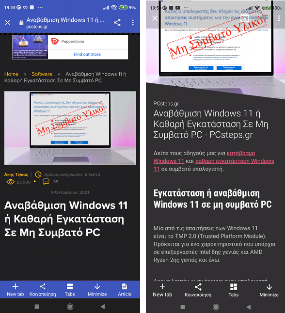Επιπλέον, προσφέρει μια κομψή ανάγνωση σελίδων σε λειτουργία άρθρου (Article) χωρίς τα διάφορα διαφημιστικά που ενδεχομένως μας δυσκολεύουν στην ανάγνωση.