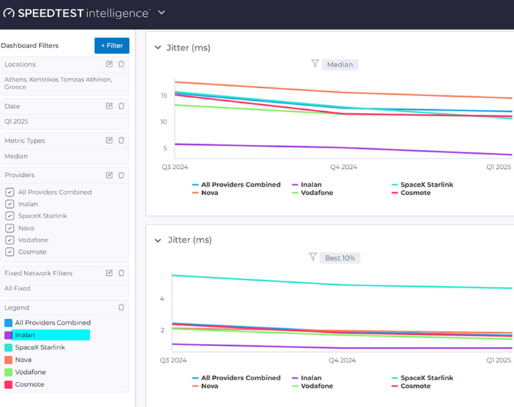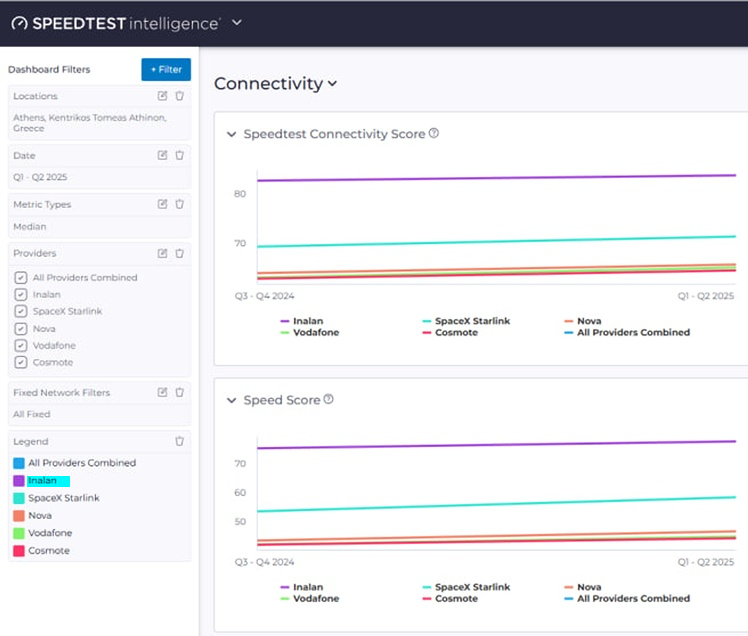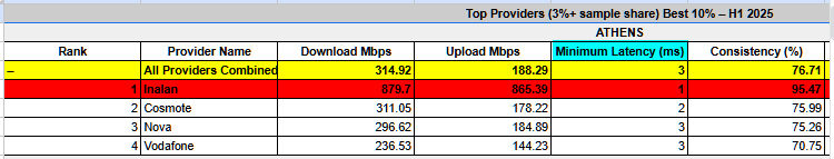 Η υπεροχή της δεν περιορίζεται μόνο στο latency. Σύμφωνα με τα στοιχεία του Speedtest Intelligence για το πρώτο εξάμηνο του 2025, η Inalan αναδείχθηκε ο πιο συνεπής πάροχος στην Ελλάδα.
