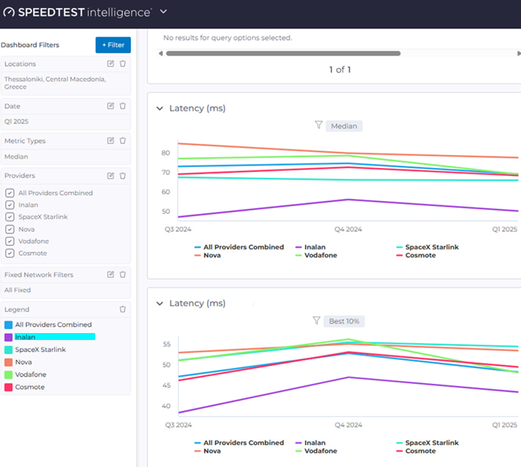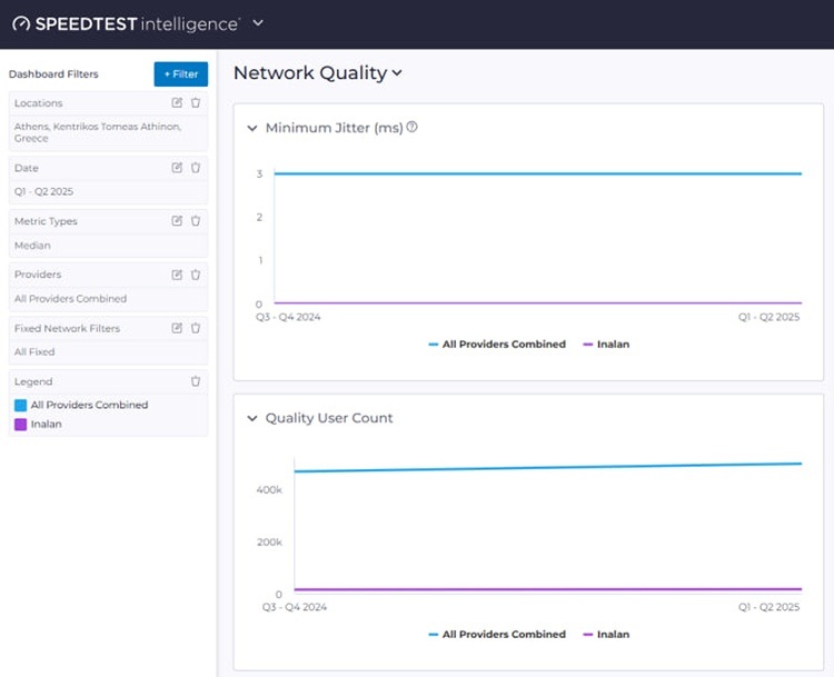 Σύμφωνα με τα πιο πρόσφατα στοιχεία από το Speedtest Intelligence της Ookla, η Inalan ήταν ο πάροχος που κατέγραψε τη χαμηλότερη διάμεση τιμή latency στην Αθήνα. Ξεπερνώντας όλους τους μεγάλους παρόχους της περιοχής.