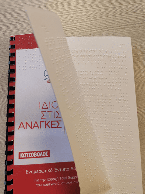 Τα έντυπα επιμελήθηκε και εκτύπωσε η Εθνική Ομοσπονδία Τυφλών, με στόχο οι συνάνθρωποί μας οι οποίοι αντιμετωπίζουν προβλήματα όρασης, να μπορούν να ενημερωθούν άμεσα και ανεξάρτητα, προσφέροντας μια καλύτερη ζωή για όλους, χωρίς εμπόδια και διακρίσεις.