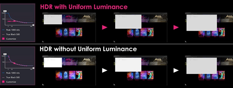 Uniform Luminance: Για να αντιμετωπιστούν οι ενοχλητικές μεταβολές φωτεινότητας που συχνά παρατηρούνται στο τυπικό HDR, αυτή η λειτουργία επιτρέπει στους χρήστες να προσαρμόσουν την καμπύλη φωτεινότητας HDR. Συνδέοντας συγκεκριμένα επίπεδα φωτεινότητας με διαφορετικά μεγέθη παραθύρων οθόνης, η λειτουργία εξασφαλίζει σταθερή και ομαλή εμπειρία σε διάφορα σενάρια χρήσης.