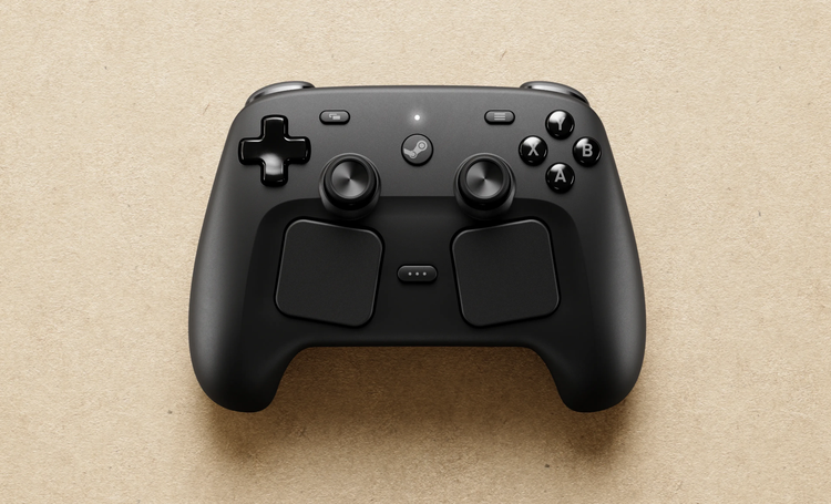 Την τριάδα ολοκληρώνει το νέο Steam Controller. Ο σχεδιασμός του βασίζεται στα inputs του Steam Deck, διαθέτοντας μαγνητικά thumbsticks – την εξέλιξη του Hall Effect, τετραγωνισμένα trackpads, και τέσσερα grip buttons στο πίσω μέρος.