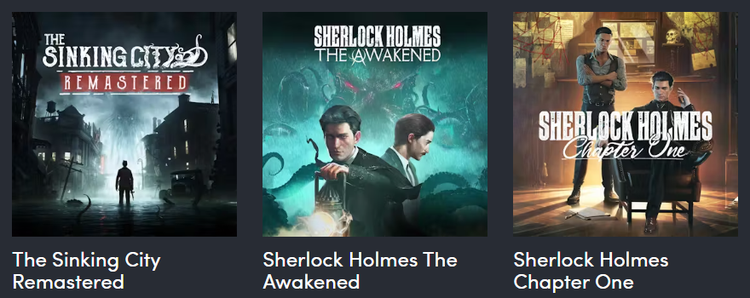 Επιπλέον, με 12,77€ και πάνω, προσθέτουμε στη λίστα το “The Sinking City Remastered”, το “Sherlock Holmes The Awakened”, και το “Sherlock Holmes Chapter One”.