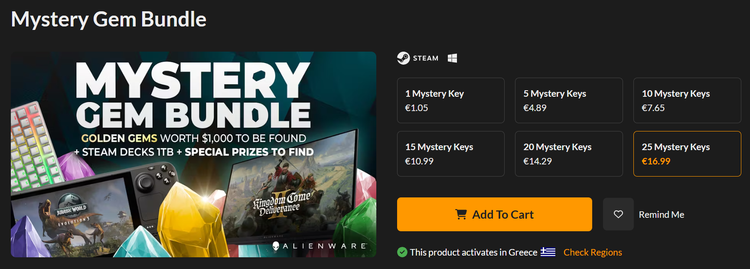 Να σημειώσουμε ότι τα κλειδιά που αγοράζουμε με το Mystery Gem Bundle είναι κρυφά. Μαθαίνουμε τι αγοράσαμε μόνο όταν η ιστοσελίδα προσθέσει τα κλειδιά στον λογαριασμό μας.