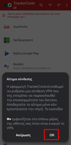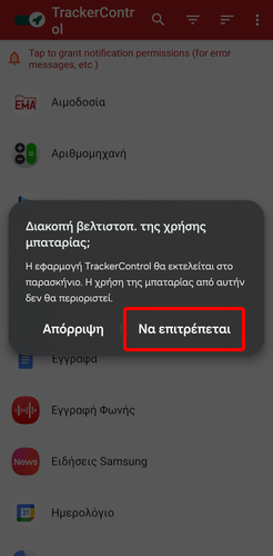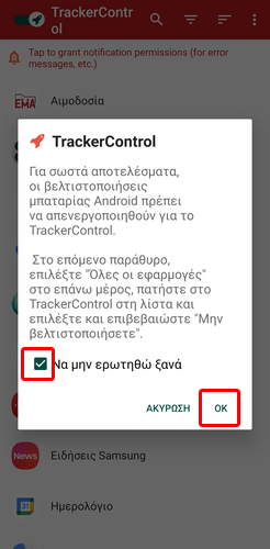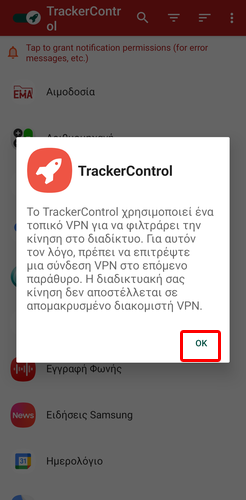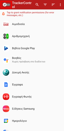 Από εδώ και στο εξής, κάθε φορά που τρέχουμε μία εφαρμογή, το TrackerControl θα ελέγχει αν μας παρακολουθεί.
