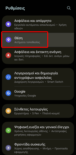 Αρχικά, απενεργοποιούμε τη συνεχή σάρωση Wi-Fi και Bluetooth, ώστε το κινητό να μην ψάχνει διαρκώς για δίκτυα και συσκευές. Για να κάνουμε κάτι τέτοιο, ανοίγουμε τις ρυθμίσεις και πατάμε “Θέση”.