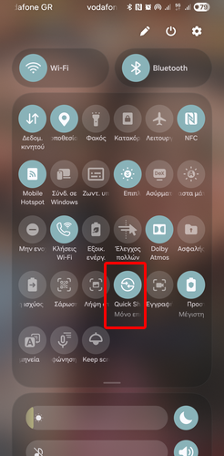 Έπειτα, ρυθμίζουμε σωστά το Quick Share, ώστε να μην ενεργοποιείται αυτόματα. Για να το πετύχουμε αυτό, πατάμε παρατεταμένο το κουμπί του στην περιοχή ειδοποιήσεων.