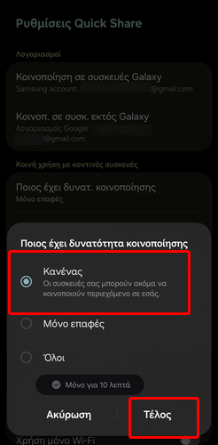 Μετά, διαλέγουμε το “Κανένας” και πατάμε “Τέλος”.