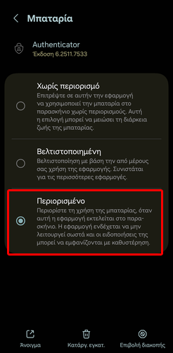 Έπειτα, διαλέγουμε το “Περιορισμένο”.