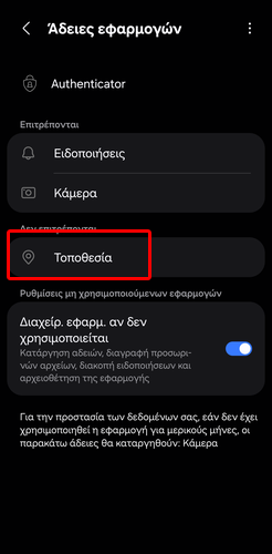Στη συνέχεια, περιορίζουμε τη δραστηριότητα στο παρασκήνιο για εφαρμογές που δεν χρειάζεται να ανανεώνονται συνεχώς, καθώς και την πρόσβαση στην τοποθεσία.