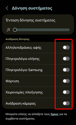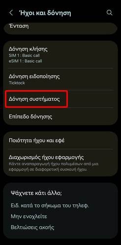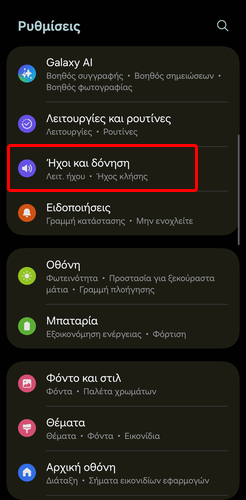 Επιπλέον, απενεργοποιούμε τις δονήσεις συστήματος και την απτική ανάδραση για το πληκτρολόγιο και τα αγγίγματα στην οθόνη. Για να το κάνουμε αυτό, μπαίνουμε στις ρυθμίσεις και πατάμε “Ήχοι και δόνηση”.