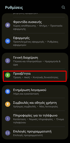 Αρχικά, πηγαίνουμε στις ρυθμίσεις και πατάμε “Προσβασιμότητα”.