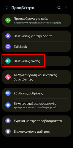 Μετά, μπαίνουμε στο “Βελτιώσεις ακοής”.